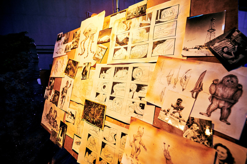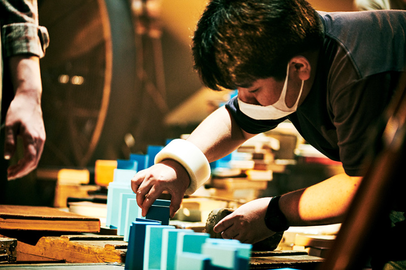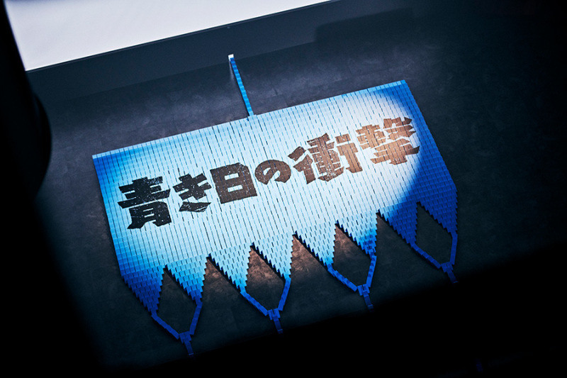 「哥吉拉.青日的衝擊」(ゴジラ・青き日の衝撃)廣告中使用了實際特攝片場進行拍攝,並出動 1954 年電影《哥吉拉》中,東寶製作的第一套哥吉拉套裝拍攝,影片中的 60 座特攝微型建築也是在《哥斯拉》系列拍攝中實際使用的,甚至連在建築物之間的道路上行駛的汽車也被忠實再現。從 1930 年代好萊塢電影的黃金時代開始,日本電影攝製組受到啟發,尋找自己的新表現方式。透過 2500塊藍色的骨牌,串聯起日本特攝技術的誕生,展現製作特攝電影背後無數工作人員不滅的熱情連鎖!