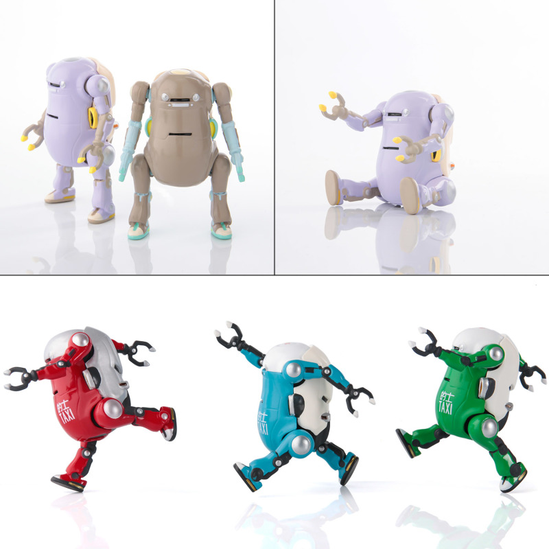 「微型機動機器人Wego 盒玩3」(Tiny MechatroWego),以高約 45 mm的迷你尺寸,將 MechatroWeGo可愛的造型精緻呈現,陣容分別為新色「摩卡」、「紫色」,以及「雞蛋黃」、「綠計程車」、「天空藍」、「粉紅」六種,雖然尺寸小,但一樣具備精美塗裝與靈活的可動四肢,可以擺飾出站姿與坐姿~