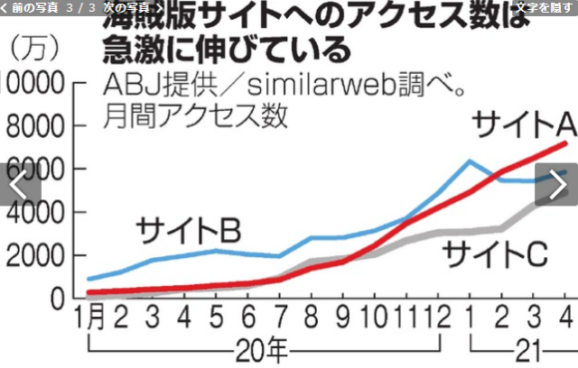 根據ABJ市場調查,排名前三位的盜版網站從2020年1月到2021年4月近半年,觀看人數超過14倍,而且難以根治、取締,甚至無法解決。