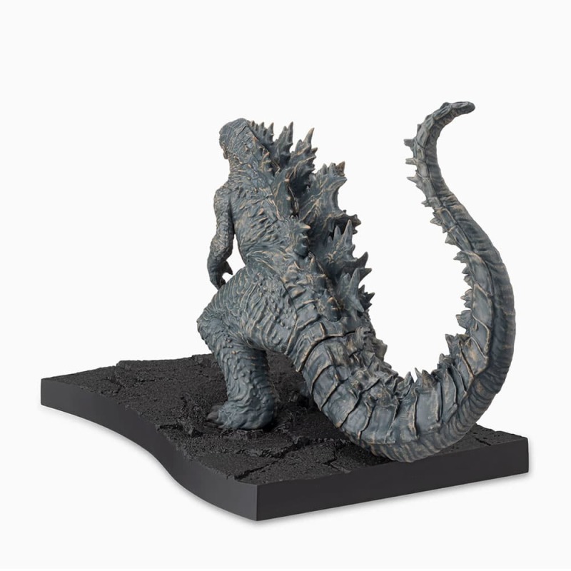 「PM 哥吉拉」景品,尺寸全高 16 公分,將傳奇系列電影中登場的傳奇哥吉拉立體化,還原粗壯碩大的脖子、厚實粗糙的皮膚與巨長的尾巴等造型。底座為龜裂的黑色大地,可以與同系列的「金剛」景品一同擺飾,營造出劇中兩大巨獸同台的場面!