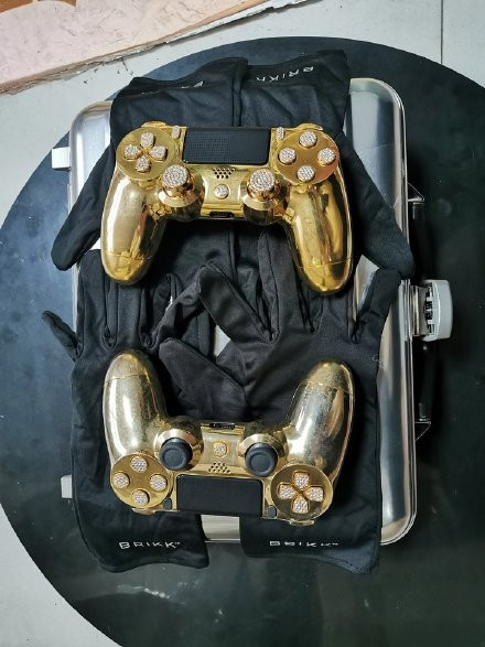 在同樣的司法拍賣場中,還有純金鑲鑽的PS4等電子產品, 而且還是全按鈕鑽石版本,估計40萬台幣限定版本。