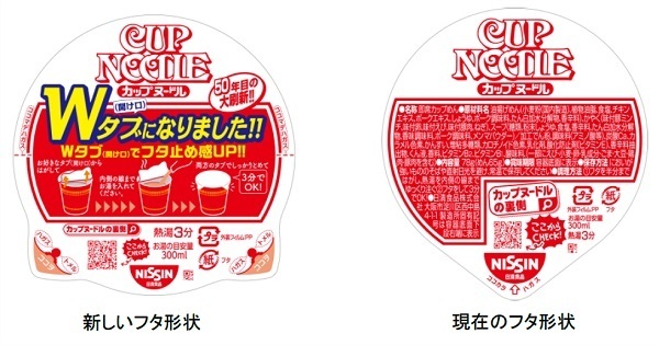 如今,日清泡麵為了響應環保政策,決定廢除50年以來的貼紙,取而代之的則是將紙杯蓋的掀蓋處增加至兩個,作用也與貼紙一樣,具有固定紙杯蓋的效果。
