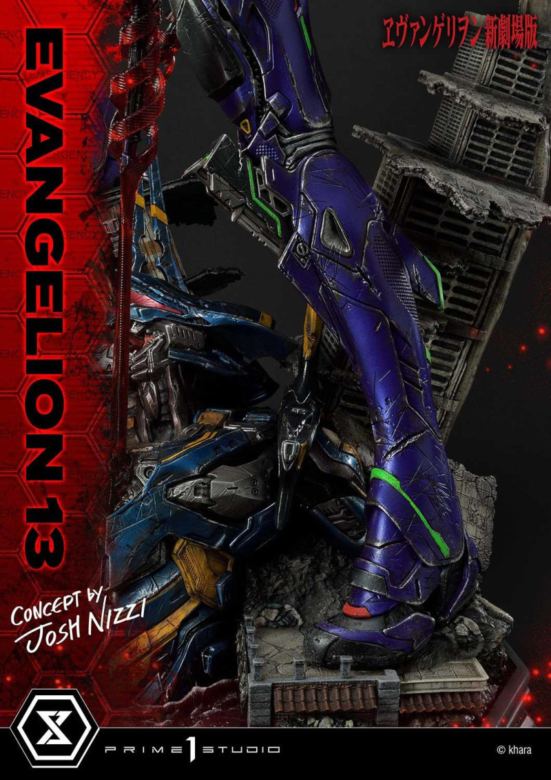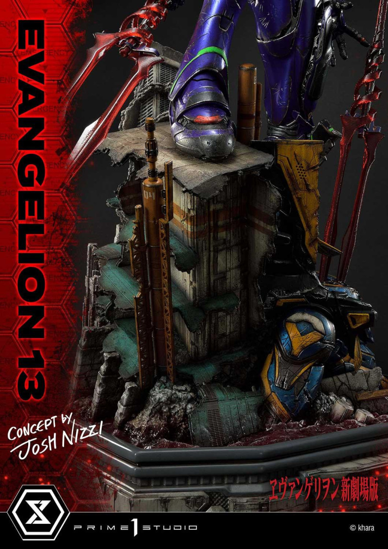 「Ultimate Diorama Masterline EVANGELION 第13號機 CONCEPT BY JOSH NIZZI」雕像,與知名的變形金剛設計師 Josh Nizzi 合作,具有獨創性的複雜機械設計結合 Prime 1 Studio 的建模能力,賦予獨特的存在感!尺寸全高 79 公分,重現了作品中第 13 號機眼睛由黃轉紅,胸口交叉狀的甲冑解開成為第二對手、拔出雙朗基努斯之槍的四手造型,舉起右手咆哮的姿勢,除了展現令人震驚的機械設計細節,更散發出宛如創世破壞神的壓倒性力量!