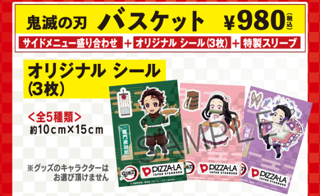 這次販售的限定口味 Pizza 是由主角四小強組成,分別為-炭治郎 ( 炭火牛肉燒口味 )、禰豆子 ( 明太子口味 )、善逸 ( 切達起司培根 )與伊之助 ( 香腸肉醬口味 ),將四種口味拼湊而成。訂餐一個即附贈一個人物原創壓克力立牌 ( 五款隨機贈送一個 ),且將有限定的包裝盒附贈。