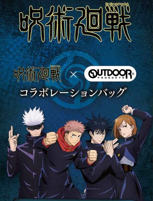 漫畫家芥見下下的漫畫作品《咒術迴戰》,為2018年開始在《週刊少年JUMP 》連載,動畫第二季也播放完畢,未來將播映劇場版。近日宣布與源自美國加州的包款品牌 OUTDOOR 展開合作,推出聯名的各種包款,分為四位主角角色款式。目前已可以於日本萬代 PB 網站預購。