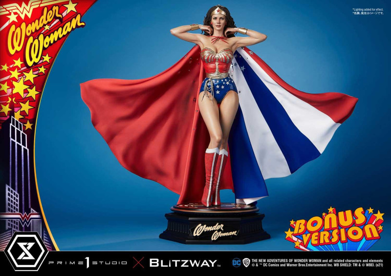 作品尺寸、細節、價格都是超高級的日本雕像大廠 Prime 1 Studio 攜手韓國頂尖造型廠牌 Blitzway,於昨(9)日在旗下的「Museum Masterline(ミュージアム マスターライン)」系列發表了出自 1975 年《神力女超人》電視劇的新作「神力女超人」(ワンダーウーマン)1/3 比例全身雕像特典版!預計將於 2021 年 11 月~2022 年 1 月發貨。