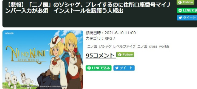 《二之國:交錯世界》於6月8日正式開放,在事前的龐大行銷也累積了不少話題性與人氣,而本次開放後,日本玩家發現遊玩條約包含填寫銀行帳號、自然人號碼,讓不少玩家感到疑慮。