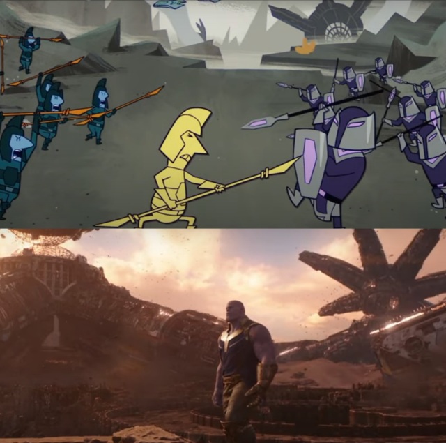 在大廳中「時間小姐」的廣告介紹了曾有一場「多元宇宙大戰」,其中一幕看似藍色皮膚的克里人在薩諾斯老家「泰坦星」上作戰。而漫畫中就發生過多起多元宇宙戰爭,其中最為著名的就是2015年第四次「秘密戰爭」由正史616宇宙對戰1610終極宇宙。當然「時間小姐」也提到了多元宇宙的狂怒 (Madness),明顯就是為《奇異博士2》的 "Multiverse of the Madness" 埋下伏筆。