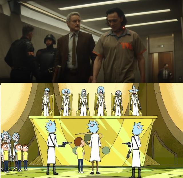 莫比烏斯召集洛基去逮捕不同宇宙的自己,這個設定非常有趣。因為本片編劇就是《瑞克與莫蒂》的 Michael Waldron,而《瑞克與莫蒂》其中一集《The Council of Ricks》就是瑞克去到多元宇宙見到不同宇宙邪惡的自己。