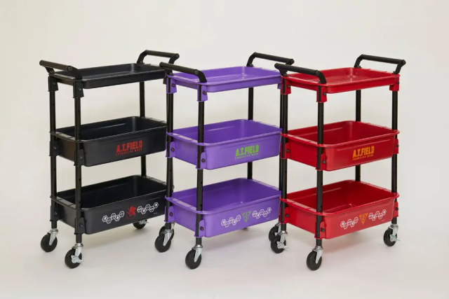 《新世紀福音戰士》官方商店「EVANGELION STORE」以的時尚工業用具主題品牌「A.T.FIELD EVANGELION WORK」( ワークブランド A.T.FIELD ) ,繼先前的 「初號機工作椅」 、「DC18V 充電式 1/2DR 衝擊扳手組合」 後,即將推出工事必需品「工具置物車」,搭配品牌的機工器具相關的商品。售價為 19,800 日圓 ( 稅入 ),目前已經可以於 EVA STORE 購買。