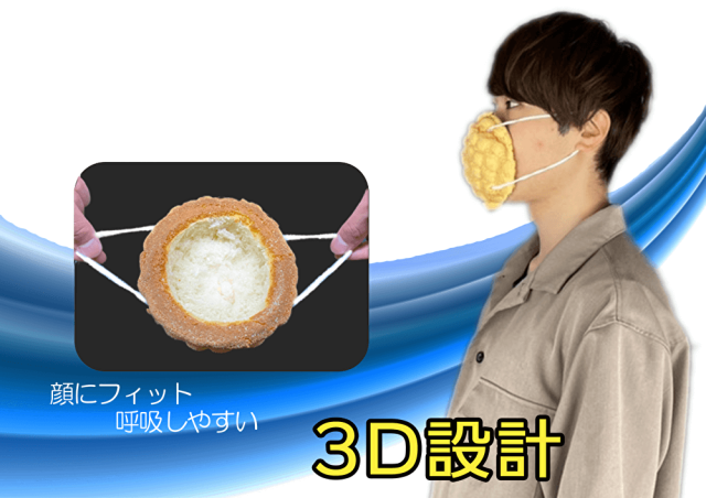 實際上,這是由日本三名大學生與日本知名麵包店「Melon de melon」所共同研發的防疫商品,讓民眾在戴上這面口罩的同時,還能聞到新鮮香甜的菠蘿麵包味道,並且吃下去,也因此成為了全球首款食用口罩。