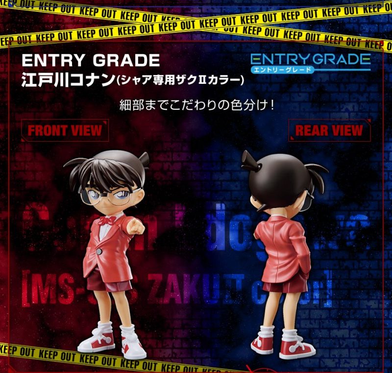 此次推出的夢幻共演「ENTRY GRADE 江戶川柯南(夏亞專用薩克Ⅱ配色)」,將 EG 名偵探柯南換上了象徵紅色彗星的紅色西裝與西裝短褲,主打能讓親子一同享受組裝模型樂趣的 ENTRY GRADE 系列,運用多色成形技術達成高度分色分件,素組即可大幅再現劇中形象,且無須使用剪鉗等任何工具,讓 8 歲以下孩童也能輕鬆、安全組裝!
