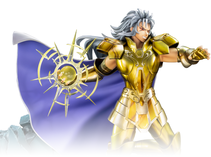 「雙子座 黃金聖鬥士撒加 IKIGAI」1/6 比例全身雕像,尺寸全高 37 公分、深 36 公分、寬 18 公分,以動畫版中徹底黑化、頭髮化為灰白色的邪惡撒加為造型,紅色眼白藍色小瞳孔的眼神相當駭人,似笑非笑的表情充滿邪惡氣息;手中的透明特效件,躍動向前的姿態展現必殺技銀河星爆的大魄力!華麗的黃金聖衣,施以厚重質感的金屬塗裝,並仔細呈現不同金色調的鎧甲。地台為石板破碎的神殿,身後倒塌的石柱,與聖域和雙子神殿相呼應。