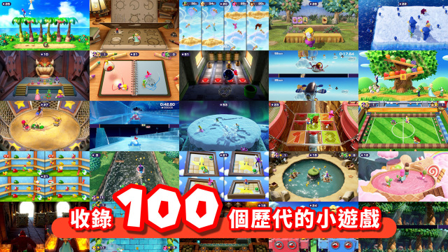 而「小遊戲」則是收錄了多達100個,從Nintendo 64的《瑪利歐派對》及Wii U的《瑪利歐派對10》中特別嚴選出來的多種小遊戲,包含「動作」、「運動」、「競賽」和「益智」等,讓玩家享有各種不同的豐富遊戲體驗。