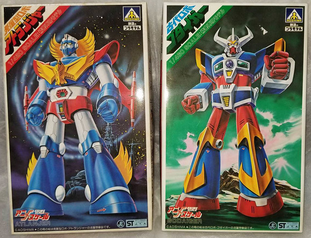 ▼青島文化教材社早期所推出的兩款機器人模型商品:左為 ATLANGER,右為GODAIGER: