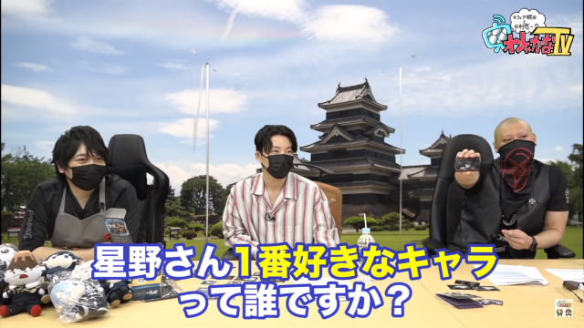 後續三人在拆封周邊卡片的時候,マフィア梶田抽到了七海建人的卡片,星野源上表示七海是他在《咒術迴戰》 最喜歡的角色,因為七海的背景設定非常貼近一般人的生活,很容易代入他的想法,尤其是還是上班族的時候,覺得更能了解關於他的故事。