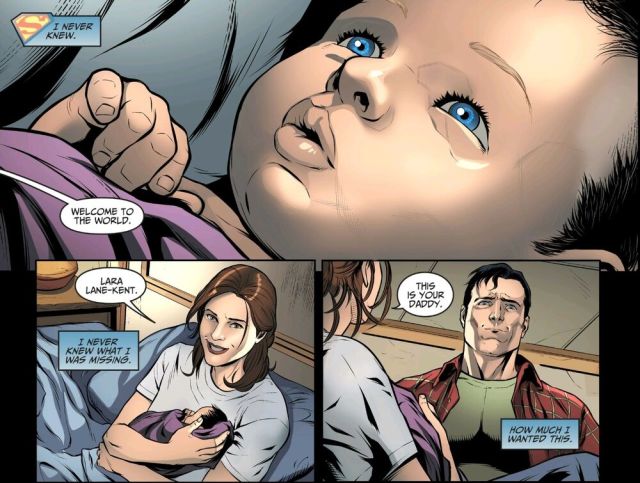 拉娜·蓮恩-肯特初次登場為漫畫《不義聯盟:人間之神》(Injustice: Gods Among Us Year)第三年第7期,講述陷入夢境的超人,不僅救了本被小丑詭計所殺害的妻子露易絲,也順利地誕下一名女兒「拉娜」,並且成為地球與外星球之間的和平大使。
