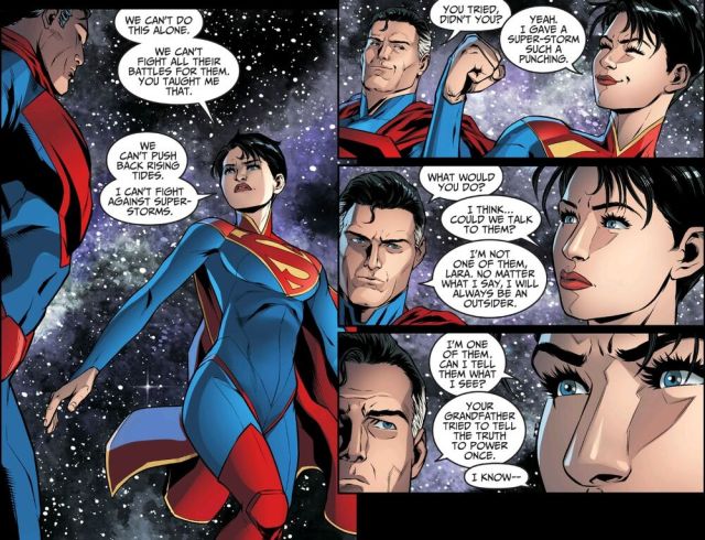 但各位可以看到,薩莎所扮演的「超少女」並非是身著紅色短裙與金髮,取而代之的是一頭黑色短髮及褲裝,且再加上戰服上紅色及肩的設計,或許將登場於《閃電俠》電影中的「氪星女孩」並非超人的堂姊「卡拉·佐-艾爾(Kara Zor-El)」,而是克拉克的未來女兒「拉娜·蓮恩-肯特(Lara Lane-Kent)」。
