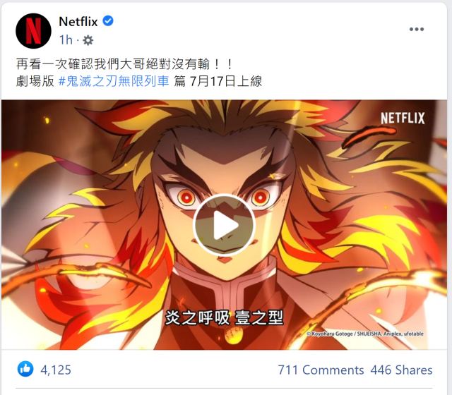 今天 ( 6/22 ) 中午 Netflix 在官方臉書專頁貼上了預告影片,確認將會在 2021 年 7 月 17 日上線,目前台灣疫情嚴峻,在這個時刻能夠有屢創紀錄的鬼滅之刃劇場版在家觀賞,不妨也是一個讓人安慰的事情 QQ。 ( 目前官方以把 PO 文影片刪除,尚未告知詳細上架資訊 )