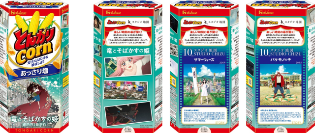 從7月上旬開始,《龍與雀斑公主》x「金牛角玉米餅」聯動包裝將出現於市面上販售,共有「鹽味」與「烤玉米」兩種經典口味,而包裝的部分則是《龍與雀斑公主》六種包裝與其他電影的三種圖樣,包含,海報、電影場景劇照、以及工作室作品圖案。