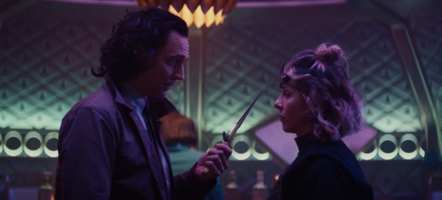 洛基眼見TVA四下無人,從置物櫃拿回自己的匕首。遇上迎面而來的Sylvie,此時他再度空拋匕首,這是 (神聖時間線的) 他在《雷神索爾:諸神黃昏》裡做過的動作。