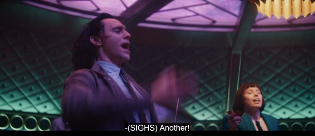 洛基酒醉後開始放肆,變回原形唱著阿斯嘉語的民謠。當然也引來警衛注意,於是再度展開一陣打鬥。此時Sylvie拿下她的皇冠當作武器,跟洛基在《諸神黃昏》片尾時一樣。