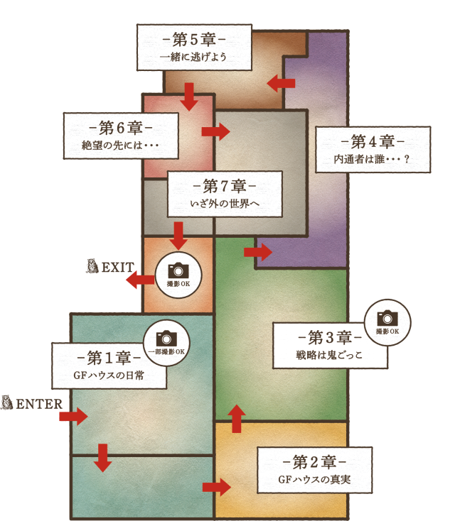 門票進場後,能夠發現展覽分為七大關卡,第一章映入眼簾的將是「GF HOUSE日常」,直到第七章「通往外面的世界」,無論是柯尼的卡車和考試房的桌子、密涅瓦先生的筆,最重要的是還原其中的空氣,光是想像就令人不寒而慄。