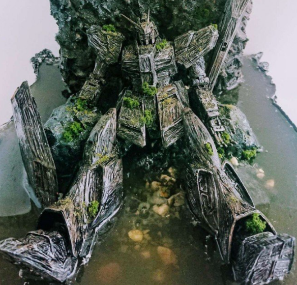 推主@nouchimokeibeya作為一個模型改造達人,除了經常在YouTube上展現作品,也會設計一些插圖,而本次他獨創的「藝術」成為報導的題材,以「失落的鋼彈」之中的「戰損樹木化」奪得大家的讚賞。
