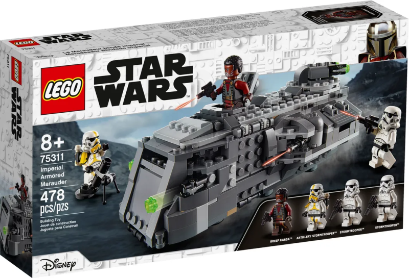 本次登場的三款盒組基本上都是以《曼達洛人》第二季的內容為題設計,載具部分包含帝國裝甲掠奪者、波巴·費特的標誌性飛船-奴隸一號,以及同是隸屬於帝國的輕型巡洋艦,載具都包含了子彈發射機構與可供把玩的機關,人偶部分從曼達洛人一行到大反派-莫夫·吉迪恩都有收錄,還有小編個人覺得樂高人偶化之後更讚的黑暗士兵,而喜歡徵兵的玩具人也不要錯過了這次的 75311 喔。