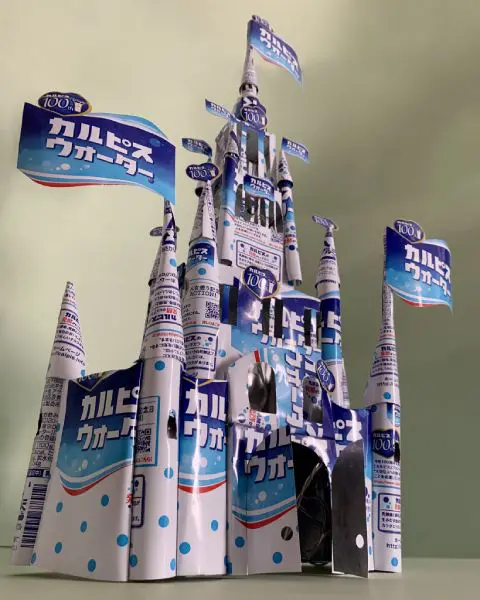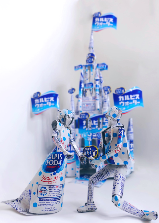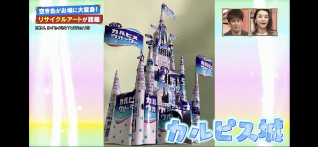 此外,他還利用可爾必思的鋁罐瓶裝,製作過一個「可爾必思城堡」,也曾引發不少網友讚嘆,甚至也因此被日本電視媒體報導。