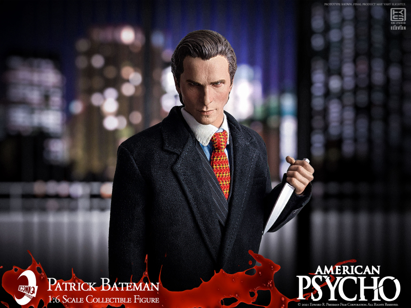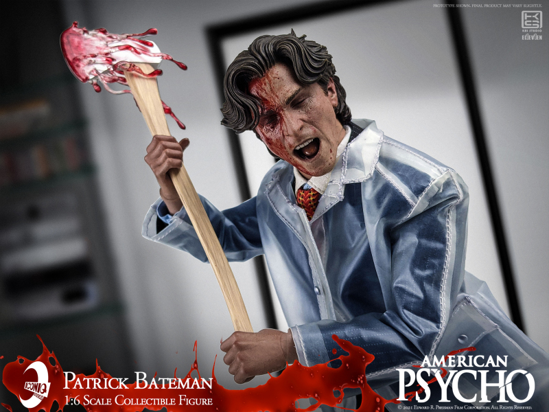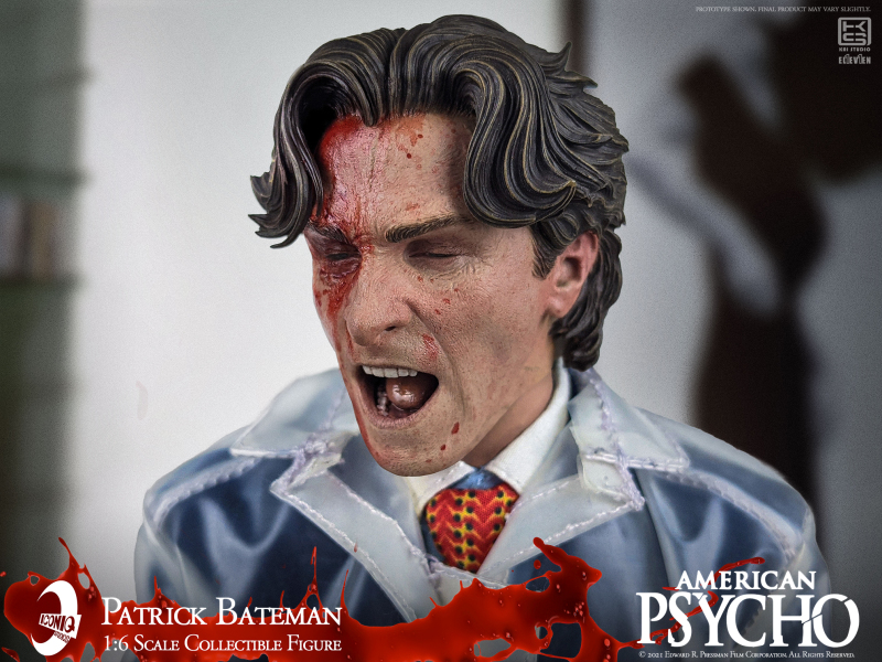 本作高約 30 公分,全身共計 34 處可動,讓你一次擁有身穿名貴西裝、相貌堂堂的派翠克·貝特曼,以及穿上雨衣、瘋狂砍人的殺人魔造型,臉部輪廓細緻地表現出克里斯汀·貝爾的神韻,殺人時頭髮雜亂、滿是血跡的頭雕尤其出色,更能利用獨立的血液特效件重現行兇前後的場景,配件部分還包含大衣、名片、公事包、斧頭、小刀、手提電話、釘槍、錄音帶播放器連耳機,可以還原許多劇中場面!