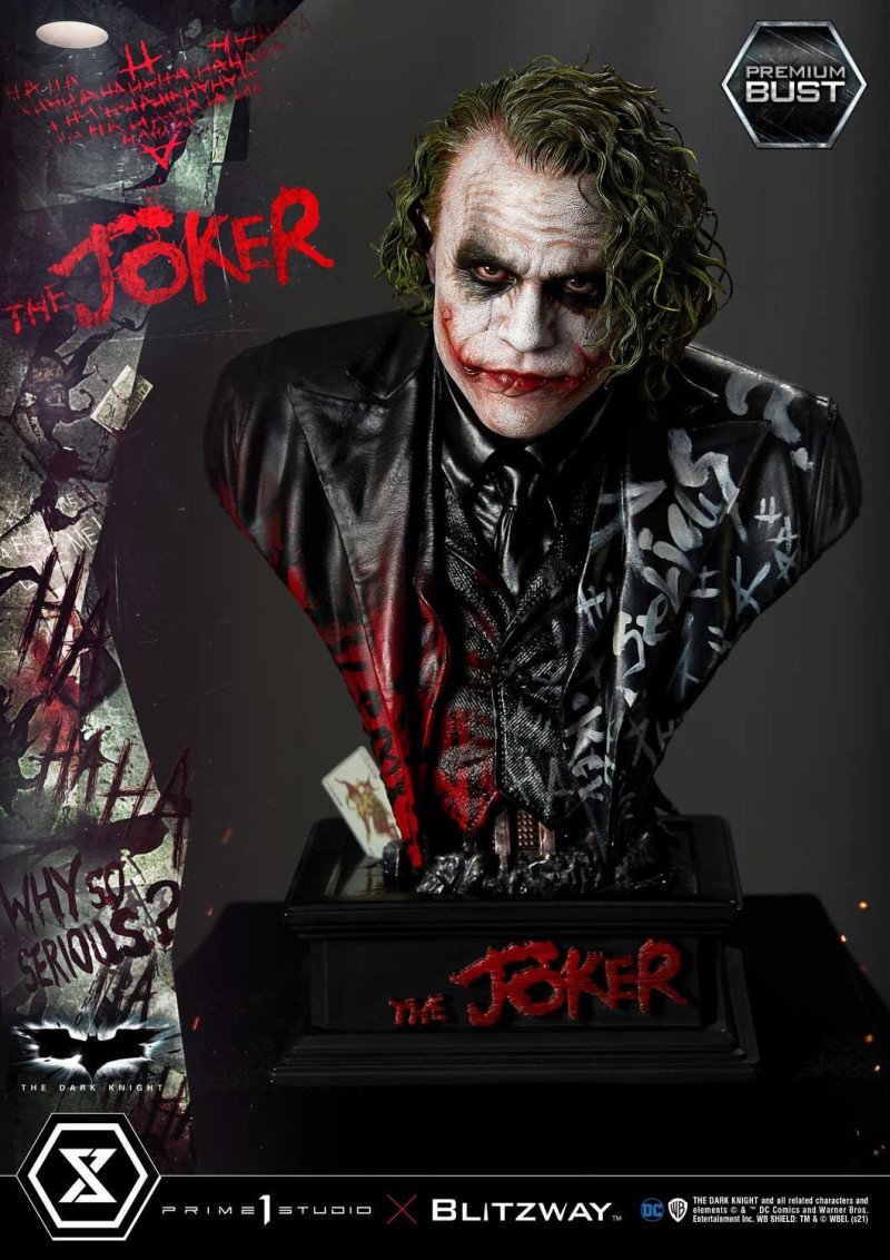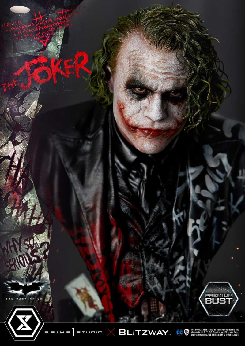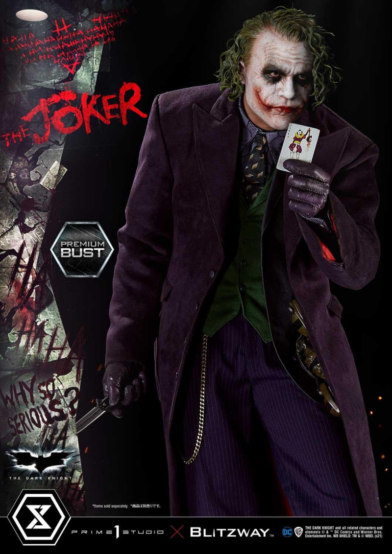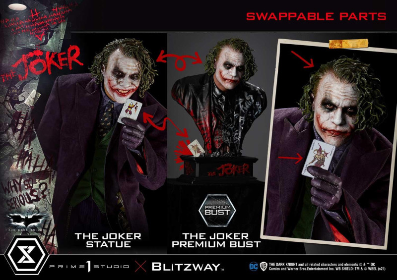 電影史上最詭譎角色之一!日本高品質雕像廠牌 Prime 1 Studio 與韓國高端造型品牌 Blitzway 攜手合作,於旗下之半身雕像產品線系列「PREMIUM BUST」,推出經典蝙蝠俠電影《黑暗騎士》(The Dark Knight)之劇中反派角色「小丑」(Joker)的 1/3 比例胸像,預計於 2021 年 11 至 2022 年 1 月之間發售。