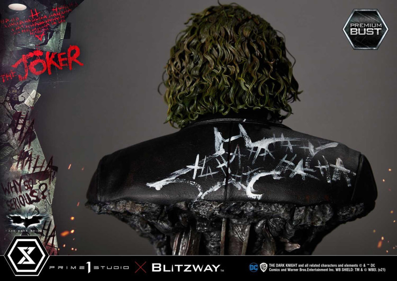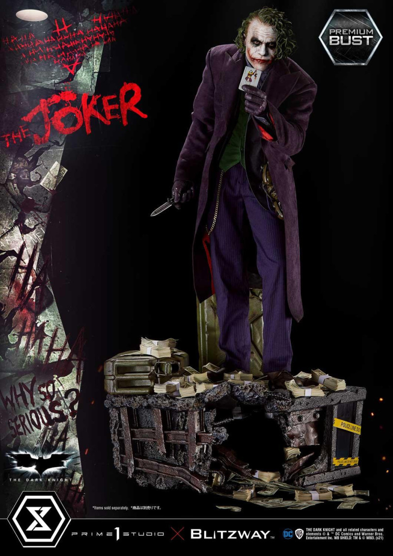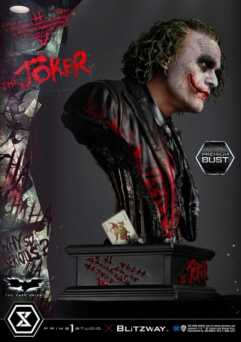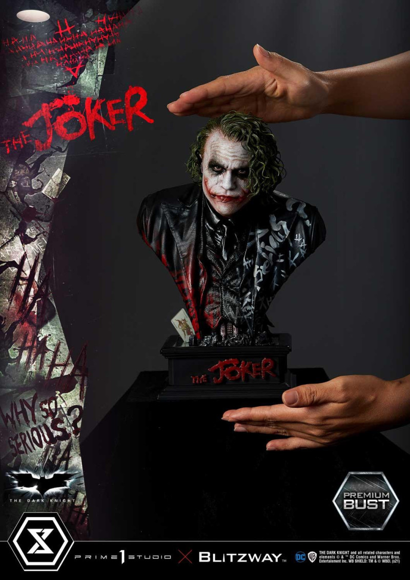電影史上最詭譎角色之一!日本高品質雕像廠牌 Prime 1 Studio 與韓國高端造型品牌 Blitzway 攜手合作,於旗下之半身雕像產品線系列「PREMIUM BUST」,推出經典蝙蝠俠電影《黑暗騎士》(The Dark Knight)之劇中反派角色「小丑」(Joker)的 1/3 比例胸像,預計於 2021 年 11 至 2022 年 1 月之間發售。