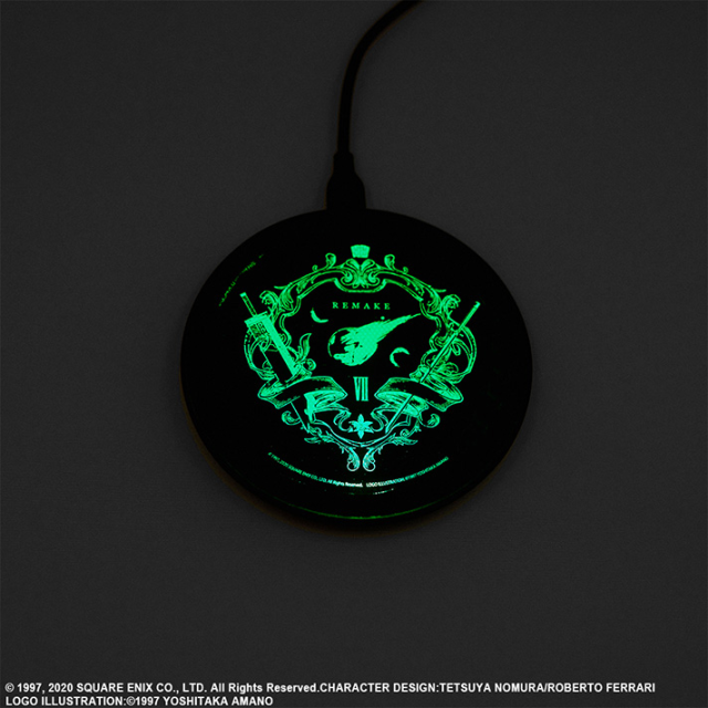 四款無線充電座分別為;《FINAL FANTASY VII REMAKE INTERGRADE》 神羅企業款&徽章圓盤款、《Final Fantasy VII 降臨神子》 Cloudy Wolf 款&圓盤款,可以替相容的 iPhone 進行充電,充電時會發出特殊光芒,讓上面圖案呈現不一樣的風貌。
