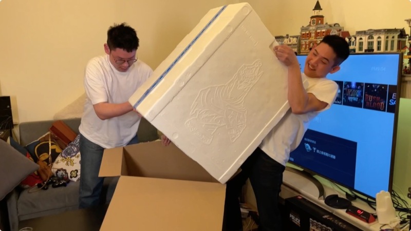 開箱的時候又有保麗龍的靜電、又有塑膠袋夾雜空氣,抽出來會被吸住,自己開箱的話真的會很吃力。