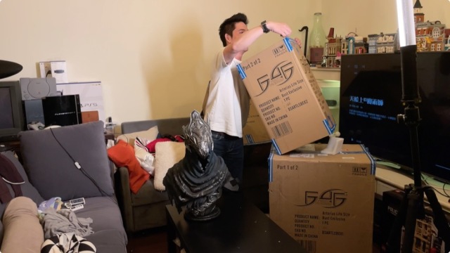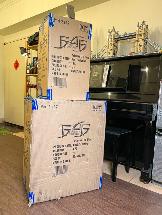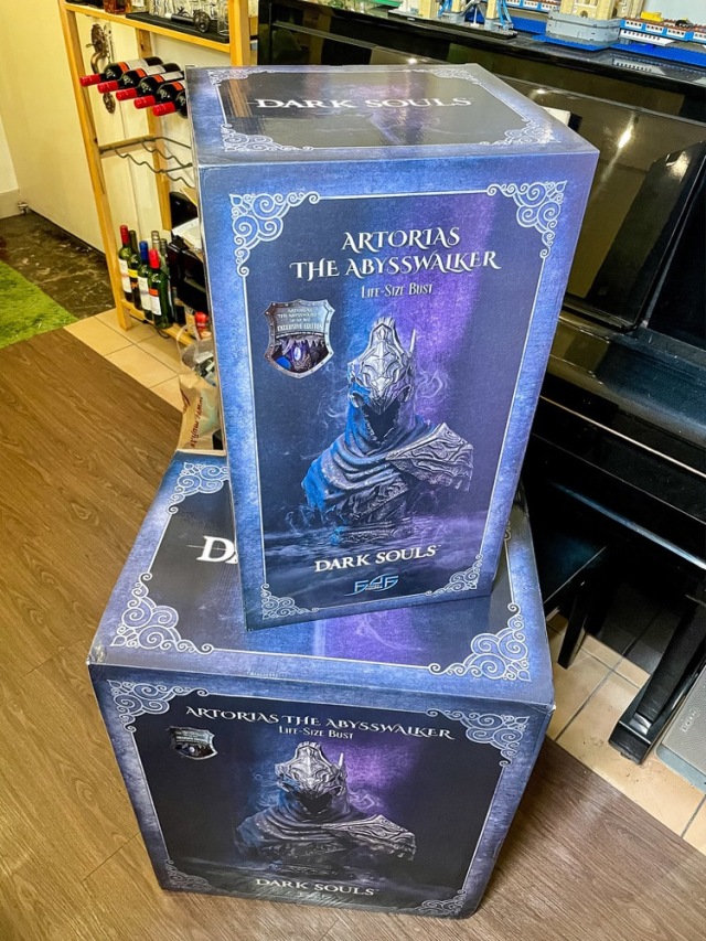 分享個人生目前買過最巨大的玩具,這是在《黑暗靈魂》DLC 打到有感情的魔王之一的「亞爾特留斯」胸像,空運寄來的兩箱加起來重量超過 30 公斤,沒朋友根本就無法開箱的人生最巨大玩具,第一次開箱玩具開到滿頭大汗。