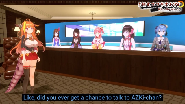 在各期生的前後輩聊天的過程可以發現,尤其是後輩們,都認為可可是帶領《Hololive》邁向海外的指標,許多後輩都是因為看過可可的影片之後,才真正了解這個產業,也踏入了 VTuber 這個工作。不少夥伴也是在對談中哭泣了,可以想見可可在大家心中的重要地位。