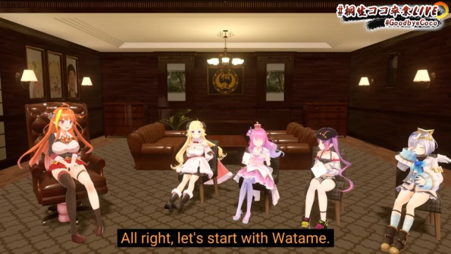 接著是同為四期生的角卷綿芽、姬森璐娜、常闇永遠及天音彼方與可可的對談。一起出道的他們有著非常深厚的感情,尤其與可可同住在一起的天音彼方,每人都獻上禮物跟信件,言語中透露不捨,希望可可未來可以一切順利。