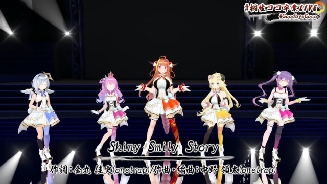 直播後半便是演唱會正式開始 ( 這部分就是直播了 ),同接人數在此時一度來到了 49 萬。四期生們一起登上舞台,在演唱了「Shiny Smily Story」、「キセキ結び 」及「Weather Hackers」三首歌曲。過程中少不了四期生的生草現場,五位在舞台還是很多閒聊屁話,各種無厘頭滑稽舉止,讓不少粉絲歡笑外,也感到溫馨感動。