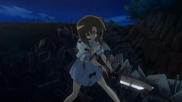 看似可愛的龍宮蕾娜(竜宮 レナ)是「贖罪篇」的主角,常被與《School Day》的桂言葉一同提起(都具有嚴重黑化屬性而且黑化時都用刀),在原作中有數處手持斧或柴刀等利器的場景,後在動畫版與漫畫版中統一改為柴刀。此後蕾娜 手持柴刀的場景給觀眾留下了極為深刻的印象,柴刀成為了該角色的標誌,被人稱為柴刀女。