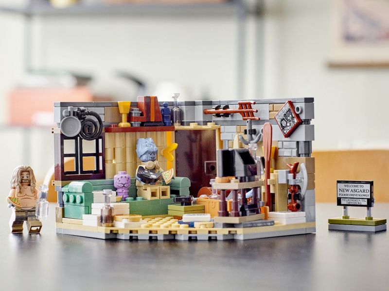 在《復仇者聯盟:終局之戰》中,當浩克與火箭來到 New Asgard、看到因為酗酒而變得肥胖的索爾,其當下受到的衝擊直接從大銀幕深深直擊每位在場所有人的心臟,現在樂高直接將這個場景做成盒組啦!本作共有 265 片零件,堆砌出一個窄小雜亂、塞滿各種東西的空間,再現了綠色沙發與顯示著電玩畫面的電視機,並附上了遊戲手把、披薩、隨意放在一旁的風暴毀滅者、酒瓶、新阿斯嘉告示牌......等各種小配件,牆壁上還有一幅象徵以往光榮時刻、與戰友們的合照。