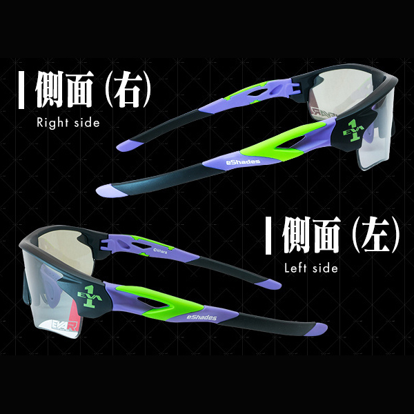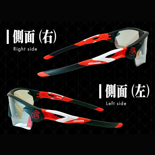 eShades 的太陽眼鏡是一款新型極速調光的太陽眼鏡有獨家專利,日本製造,適用於戶外運動如踏單車、遠足、跑步、釣魚、打網球、高爾夫球、滑雪和駕車等運動使用。這次與《EVANGELION RACING》合作,就是為了給旗下的賽車手比賽使用,替車手治裝表現出更好的賽車成績。