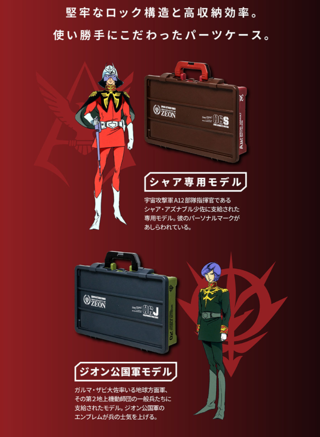 先前《新世紀福音戰士》主題設計的時尚工具品牌「A.T.FIELD EVANGELION WORK」 推出不少工業用具,深受粉絲喜愛。最近日本玩具品牌萬代也來挑戰工業用品領域了 ! 近日宣布將推出以《機動戰士鋼彈》為主題設計的 「工具手提箱」,分別推出夏亞紅&吉翁色兩款。售價為 4,378 日圓,目前已可於日本萬代 PB 網站預購,預計 2021 年 8 月正式發售。