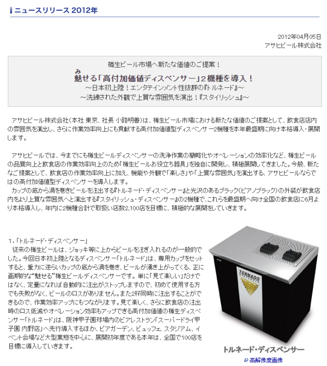 但更驚人的是,如果去找Asahi的新聞稿,會發現這個技術竟然在2012年就已經誕生了呢!
