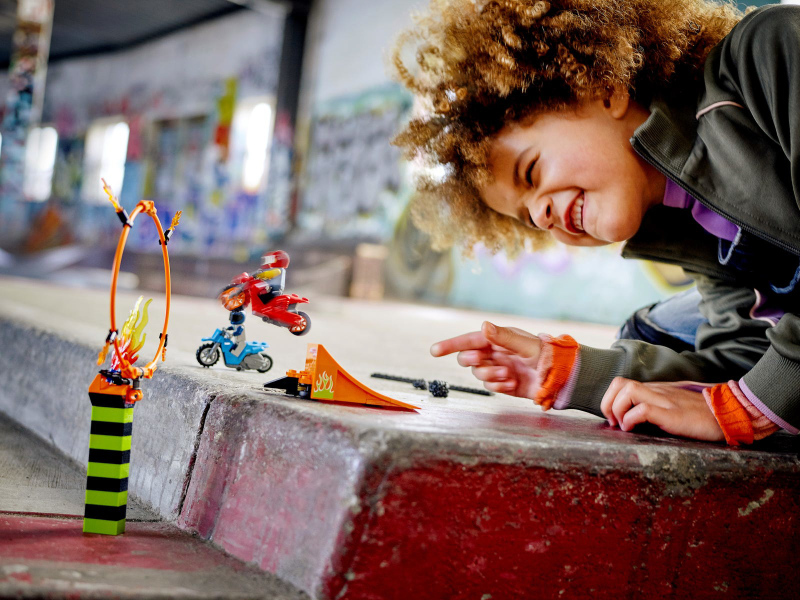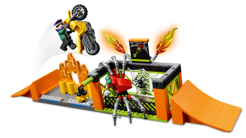 在這次主打飛車競技的「Stuntz」盒組中,可以看到各式各樣的摩托車、怪獸卡車,以及豐富的特技場地道具,利用斜坡、火焰特效、樂高摩托車後輪搭載的「Flywheel-powered」動力設計就可以重現特技摩托車比賽的刺激場面,另外一個吸引小編的點是部分人偶服裝的有趣印刷,像是 60294 裡身穿吊帶褲、戴著潛水帽的小丑,跟 60295 中上衣印著滿版血盆大口的女車手都很有趣,另外這次 Stuntz 還有推出單裝形式的摩托車手&機車組合,將在下篇整理給各位玩具人。
