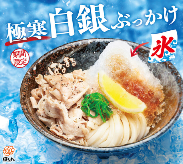連鎖烏龍麵店鋪-花丸烏龍麵在日本各地皆有店面設立,甚至還拓展到中國與馬來西亞開店。近日推出一款非常具有話題性的商品「極寒白銀烏龍麵」,給在炎炎夏日的消費者一個完全不同的體驗。推出三種口味 : 鹽味豬肉檸檬、泡菜與秋葵雞肉,7/6 一推出立刻引發日本網民熱議。