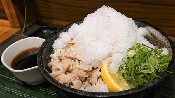 「極寒白銀烏龍麵」其實就是冷烏龍麵上鋪上了大大的刨冰為噱頭,在高湯中的刨冰融化的同時,配合享用烏龍麵。並用融化的刨冰製成的冷高湯與店家夏季特製麵條相互搭配。具有嚼勁的麵體配和刨冰與高湯的結合,可以充分享受喉嚨的冰涼。