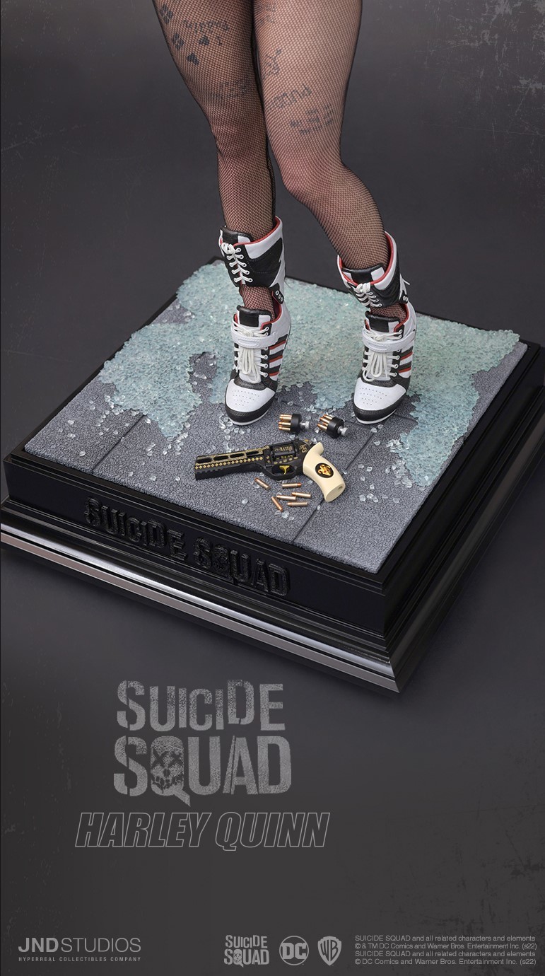 韓國新銳雕像廠牌 JND Studios 在推出「亞瑟·佛萊克」、「神力女超人 金鷹裝甲」以及《黑暗騎士》「小丑JOKER」、「貓女」雕像之後,第五款全新力作是來自電影《自殺突擊隊》的「小丑女 哈莉·奎茵」1/3 比例超現實電影全身雕像,預計將在 2022 年第四季發售。