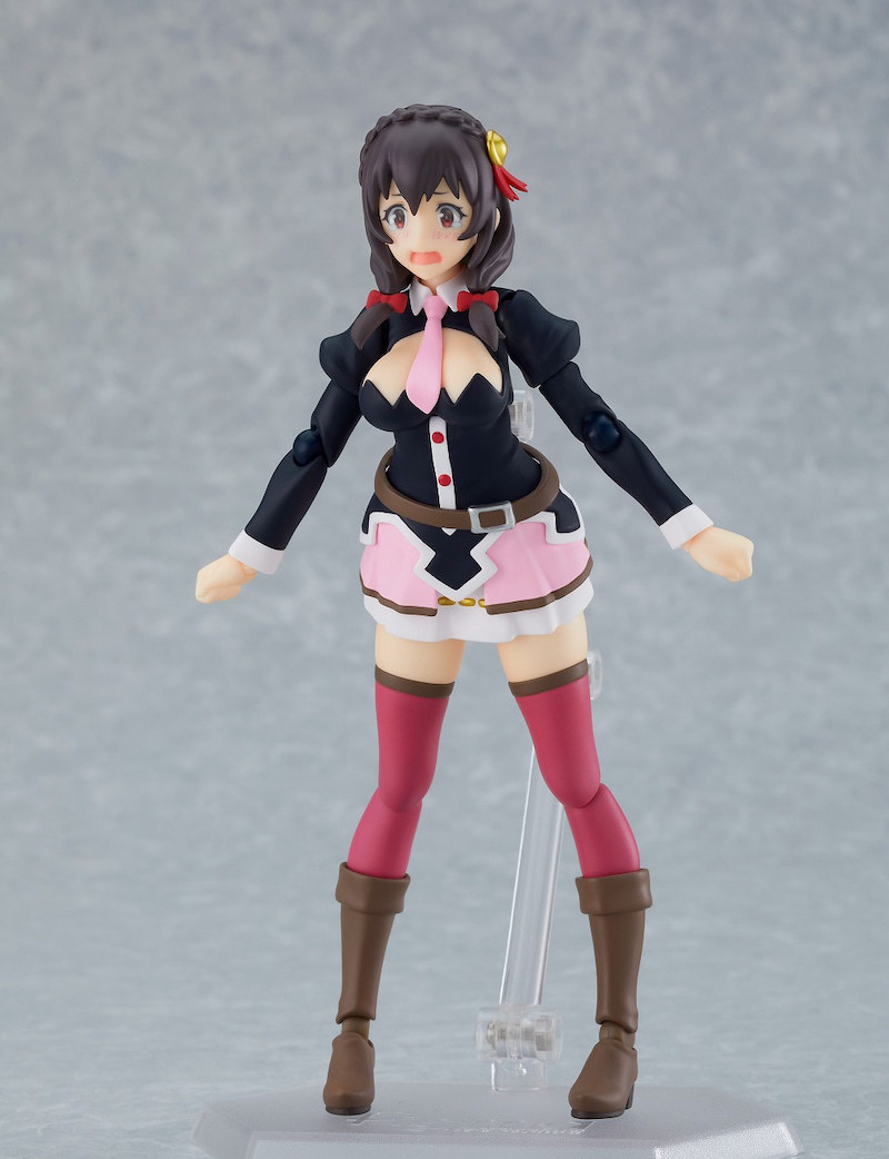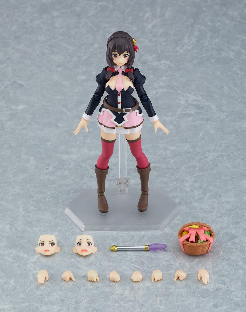 「figma 芸芸」依據動畫版人設製作,忠實再現服裝造型與姣好身材,並使用 figma 原創關節零件獲得靈活、牢固的可動。表情零件則有「普通臉」、想跟惠惠分出勝負時的「自信臉」、讓人覺得豪可憐的「哭哭臉」可替換,能夠搭配「法杖」、「伴手禮水果籃」等配件把玩出多種場景!