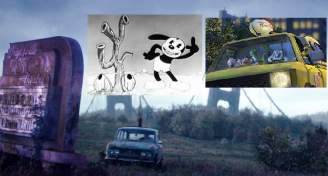 莫比烏斯開著一台披薩車來營救希爾薇。可以看到旁邊有個露天電影院的招牌寫著 ”Oswald on the Martian” 這個片名來自於1930年華特迪士尼製作的「幸運兔奧斯華」(Oswald the Lucky Rabbit ) 短片,這個角色其實就是米老鼠的原型,只是後來版權被惡意投靠環球的員工竊走,讓華特迪士尼再度創造出米老鼠的角色。